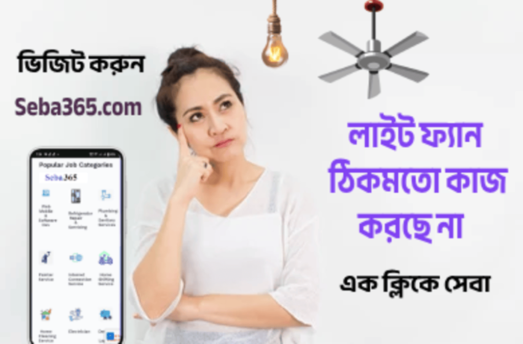 আপনার লাইট বা ফ্যানের ঝামেলা দ্রুত সমাধান করুন – আজই Seba365 থেকে ইলেকট্রিশিয়ান বুক করুন।