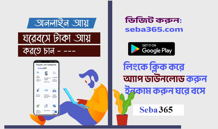 Earn Money with seba365 Android অ্যাপ আপনার হাতের মুঠোয় এখন ঘরের সকল সেবা!